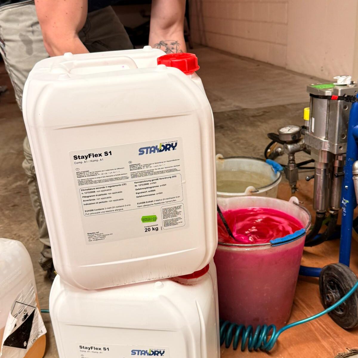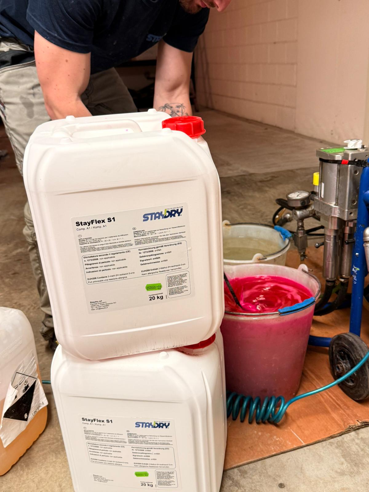 StayFlex-S è una resina acrilica tricomponente regolabile a bassa viscosità e a base di metacrilato che polimerizza in un gel flessibile. Sviluppata per interventi professionali di impermeabilizzazione strutturale. La sua viscosità estremamente bassa le consente di penetrare in profondità anche nelle microfessure di cemento armato, giunti e nidi di ghiaia, formando un gel flessibile, impermeabile e stabile nel tempo. A differenza delle comuni schiume poliuretaniche, StayFlex-S reagisce in modo controllato, creando una barriera interna e duratura che resiste alle pressioni idrostatiche e ai movimenti della struttura. Il trattamento non genera espansioni pericolose né riempimenti casuali. Questo sistema richiede competenza, analisi tecnica e una lettura attenta della muratura. Non si tratta di “coprire” il problema, ma di intervenire in modo mirato, strutturale e reversibile.